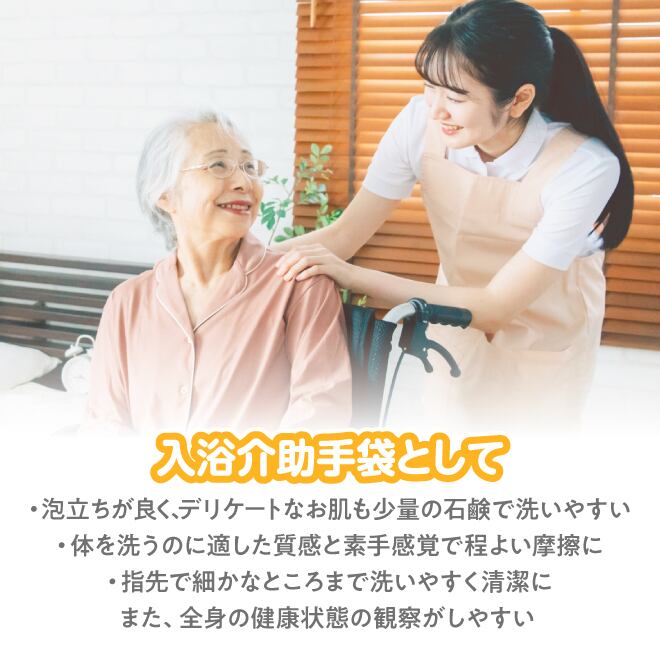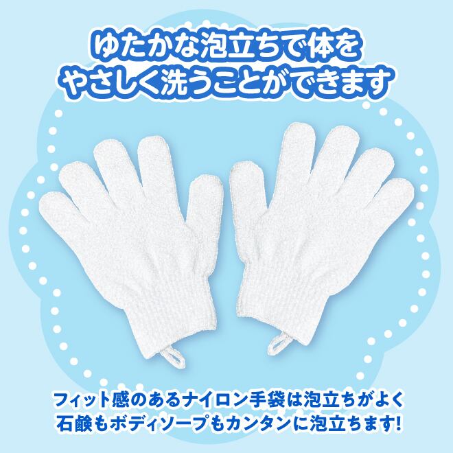 手で洗う感覚で、足指の間など細かいところまですみずみ洗うことができる浴用手袋です。