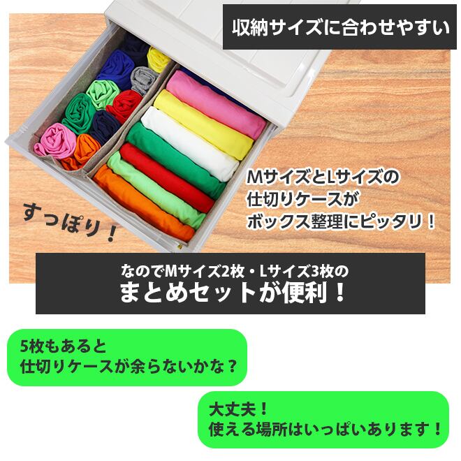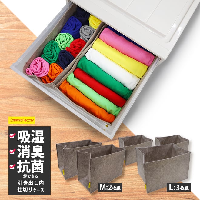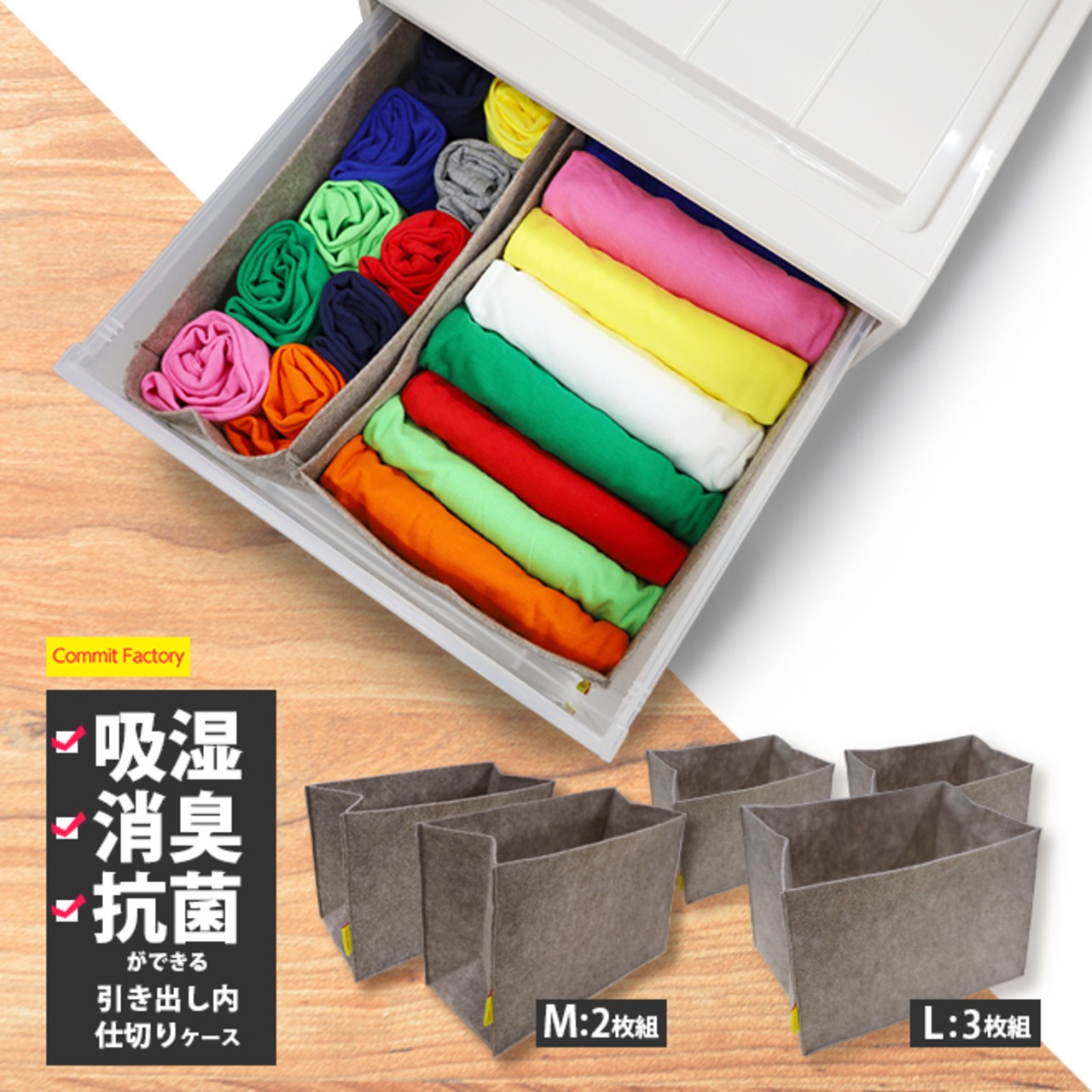 Commit Factory 吸湿+消臭 引き出し内の仕切りケース M 2枚組+L 3枚組 合計5枚セット